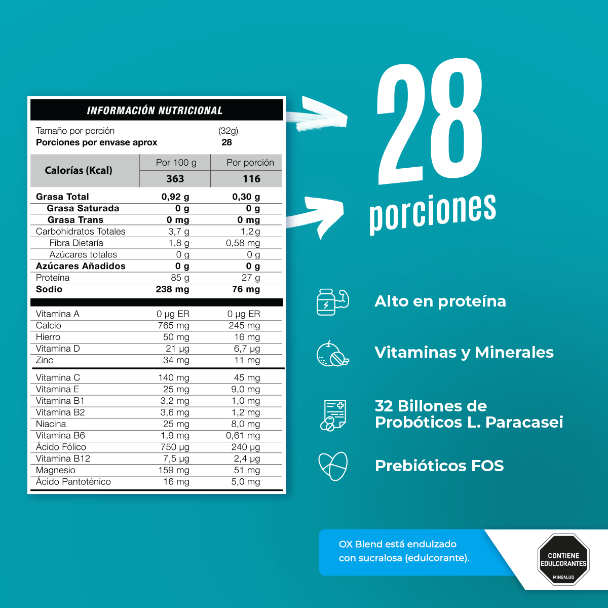 OX Blend está elaborado con whey isolate de alta pureza, lo que reduce significativamente la lactosa. Sin embargo, si tienes alta intolerancia, consulta con tu nutricionista antes de usarlo.