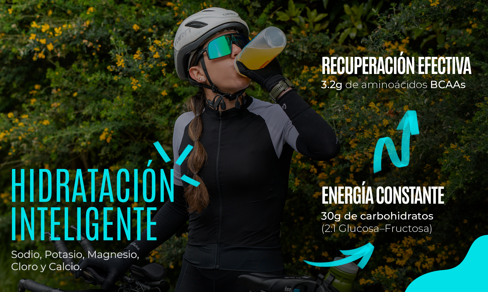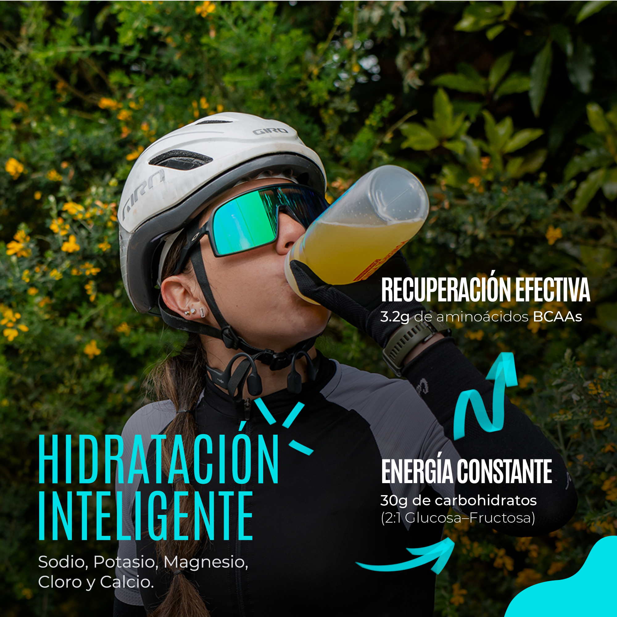 Empieza a tomarlo antes de iniciar la competencia como parte de tu estrategia de prehidratación. Luego, toma pequeños sorbos cada 10 a 15 minutos durante la carrera. Se recomienda una porción (38 g) por cada hora de competencia, disuelta en 500 ml de agua.